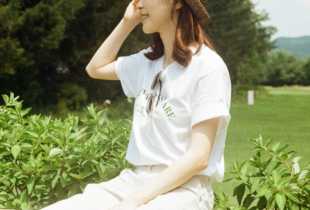 화이트, M 사이즈 착용/ 필름사진 색상은 실제 프린팅 색상과 차이가 있습니다. 색상은 맨 아래 상세 사진을 참고하세요.