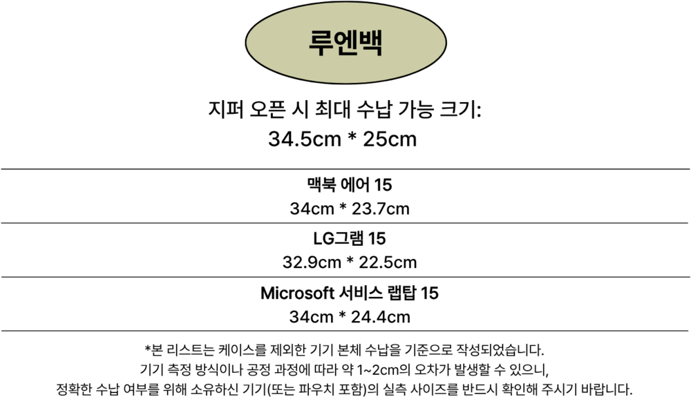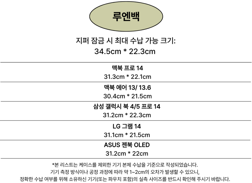 15인치노트북까지(지퍼 잠금 없이 수납 시)